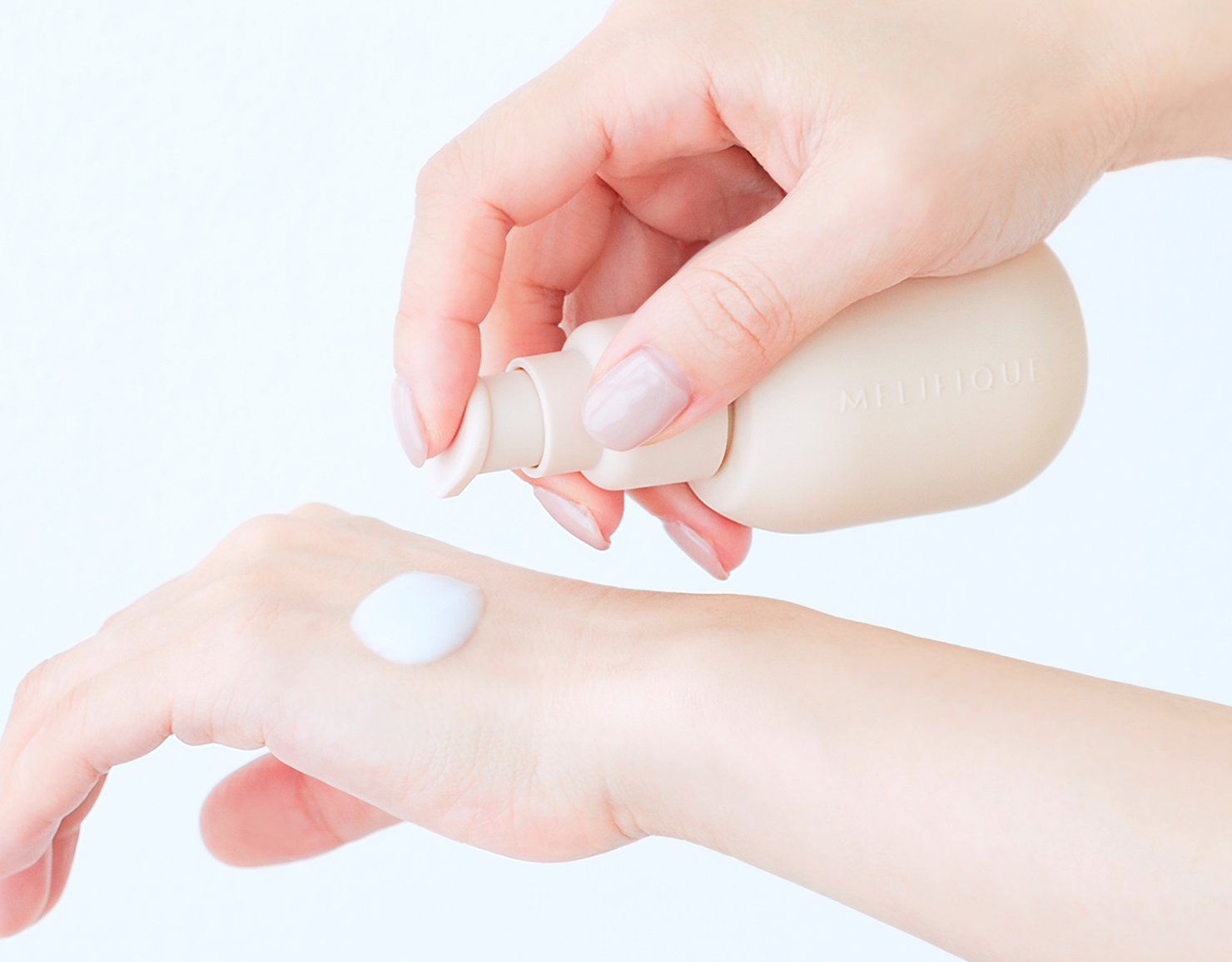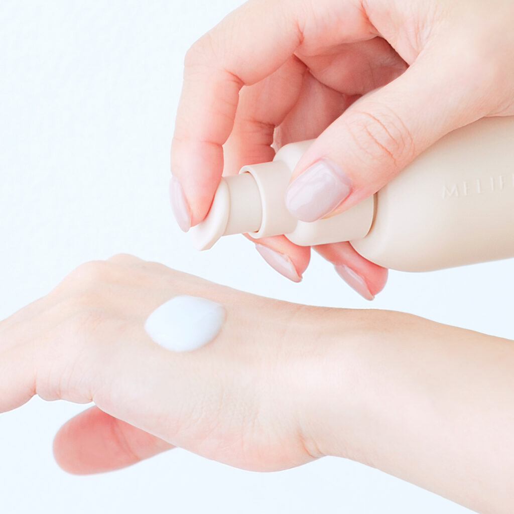 肌に浸透していく感じを意識しながら、1プッシュずつ丁寧に重ね付けしてください。